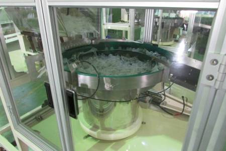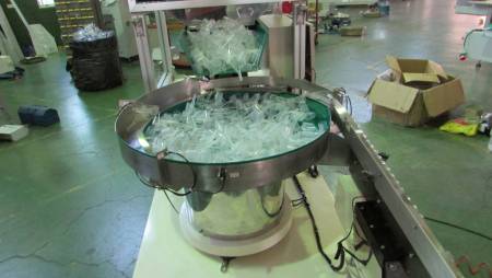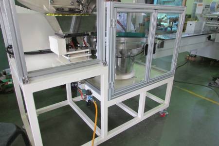 Use with vibrating feeder. Feeding and aligning automatically, Speed can up to 150 pack/min.
